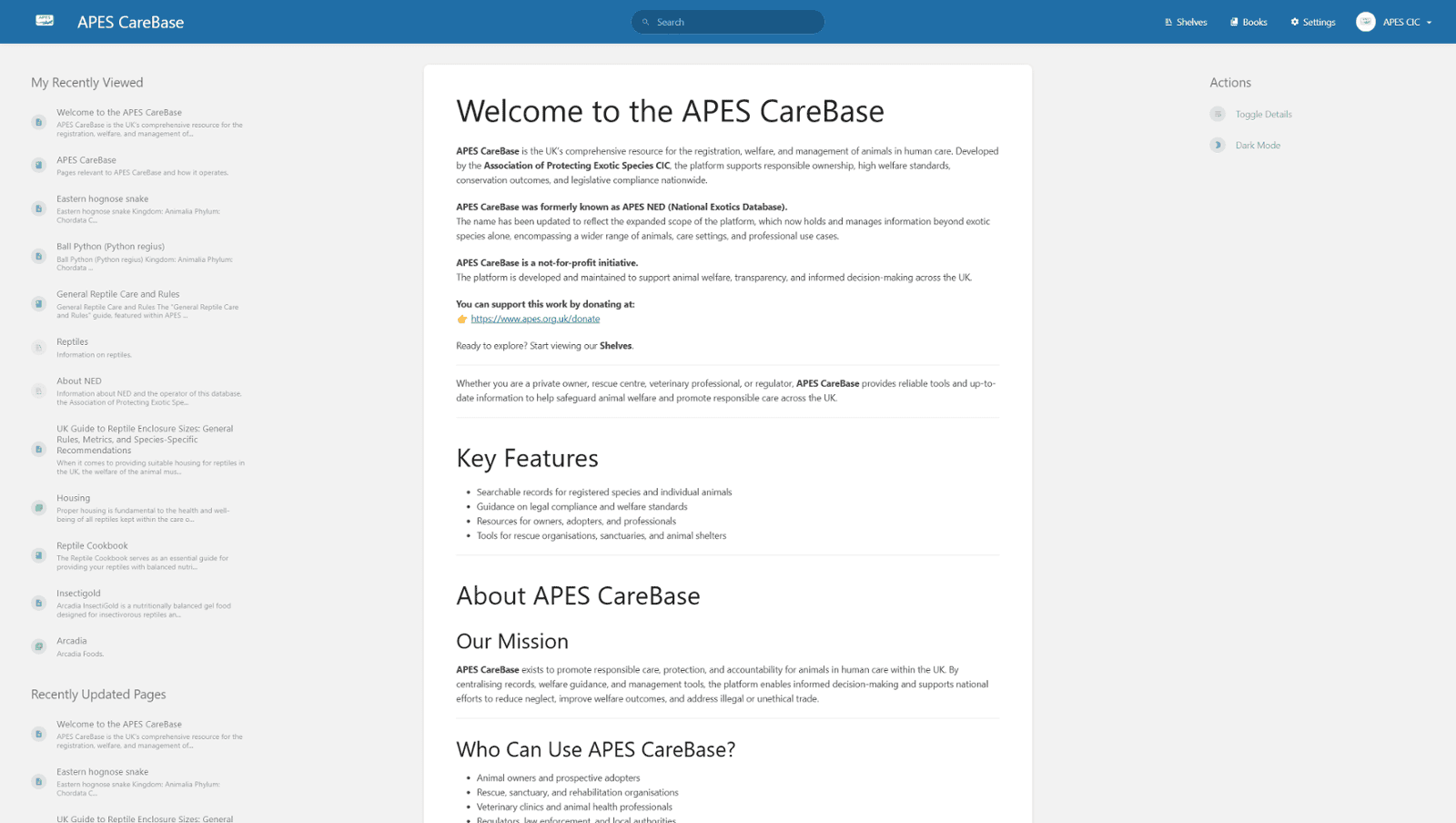 We’re pleased to share an important update with our supporters, partners, and wider animal welfare community. Our long-standing database, previously known as NED, has now evolved into APES CareBase, a significant step forward in how we support animal welfare and care through better data, collaboration, and accessibility.